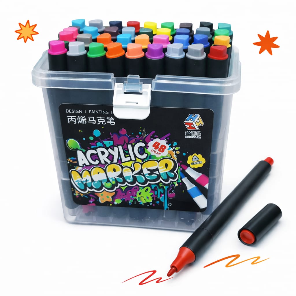 48 Colors Acrylic Marker Pen Set – Premium Paint Markers with Storage Box