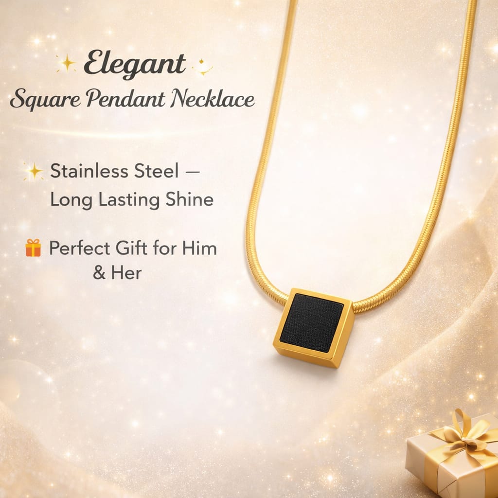 This Elegant Square Pendant Necklace features a stylish square-shaped pendant with a bold black center, giving it a modern and sophisticated appearance. The smooth gold-tone chain complements the pendant beautifully, creating a classy and timeless accessory.